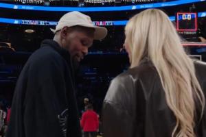 本场比赛,NBA球星杜兰特再次来到加密网竞技场看球,赛后还与库里教妹布林克进行了寒暄。媒体BricksCenter更新了社交媒体调侃到:“哥们,杜兰特一直在盯着布林肯的腿看。”