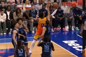 雷霆击败尼克斯SGA连续135场20+布伦森30分唐斯15+18